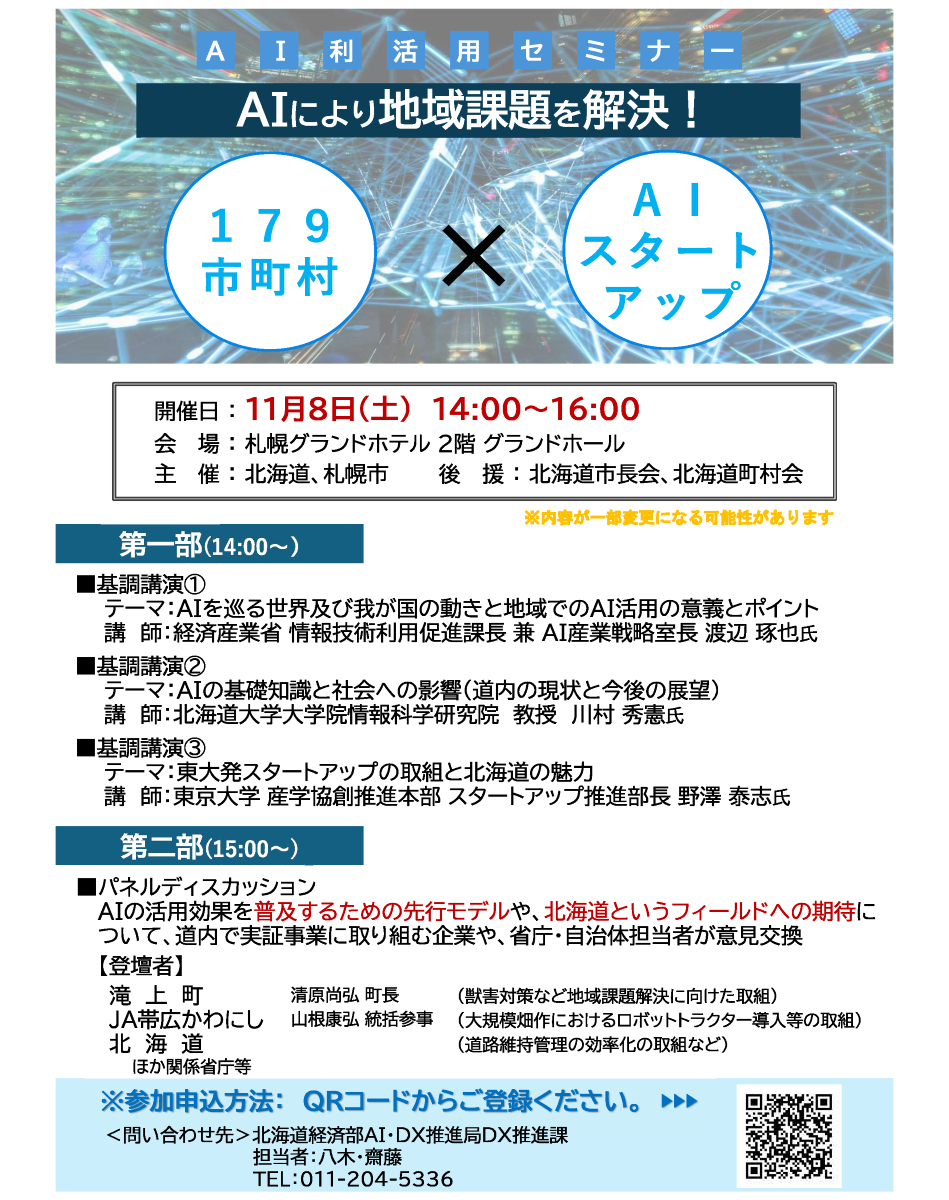 北海道経済部 AI・DX推進局 DX推進課(担当:八木・齋藤)