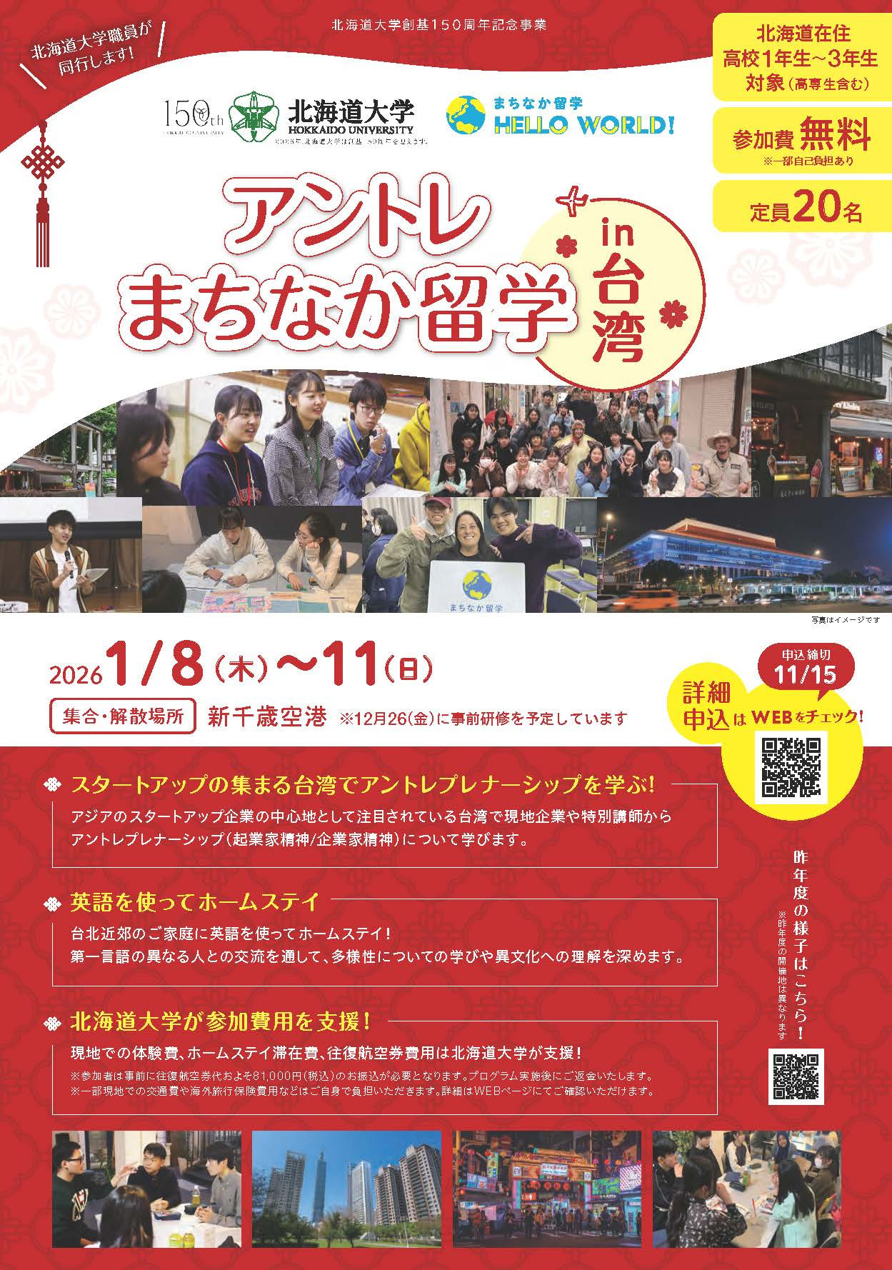 高校生・高専生向けアントレプレナーシップ教育プログラム「アントレまちなか留学in台湾」を開催します!