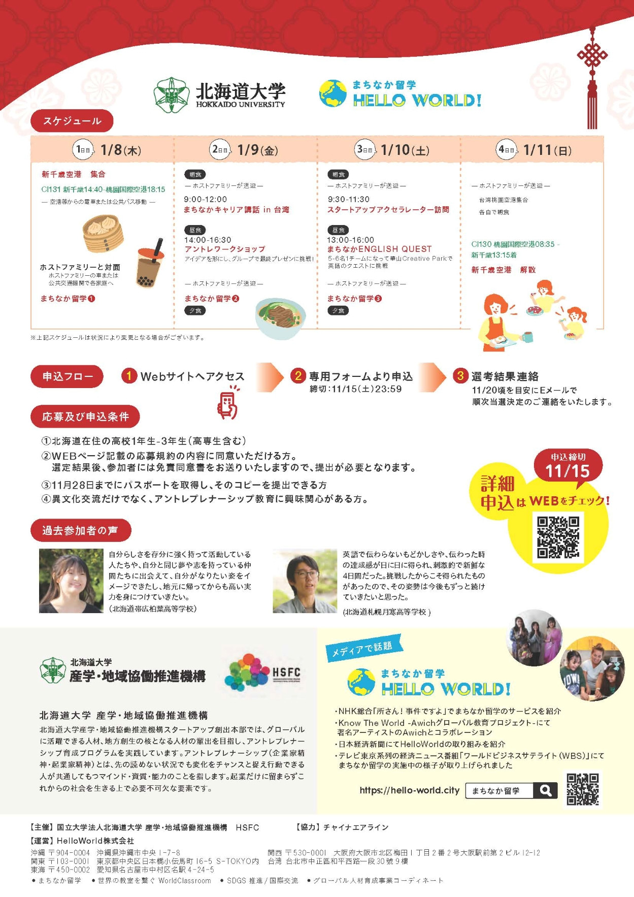 【募集は終了しました】高校生等向け「アントレまちなか留学in台湾」