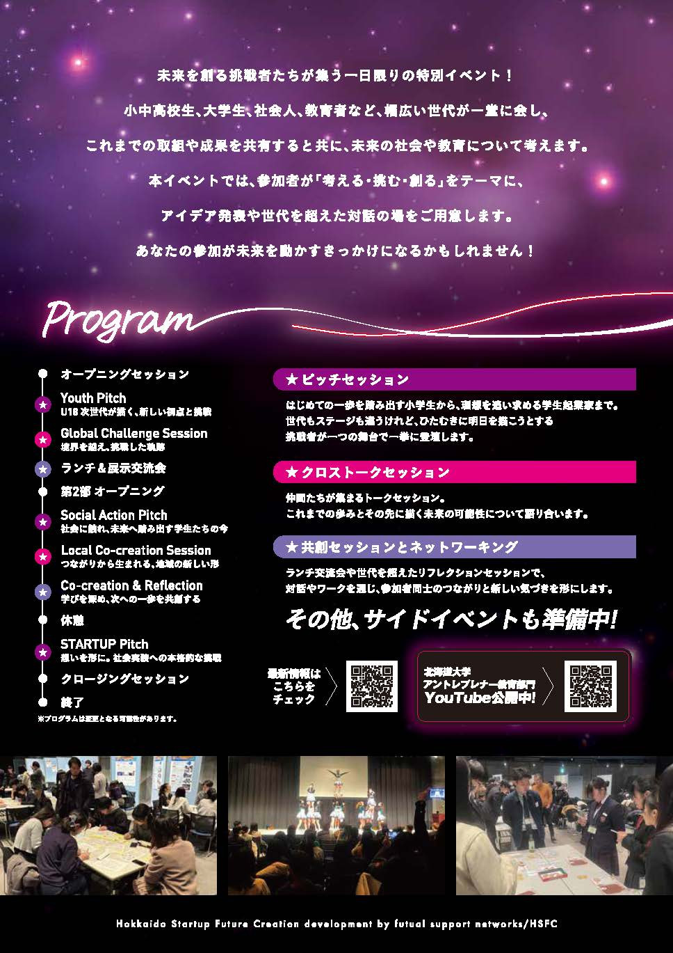 北海道未来創造スタートアップ育成相互支援ネットワーク(HSFC)は、アントレプレナーシップ教育の一環として、「HOKKAIDO INNOVATION HUNTER」を開催します。